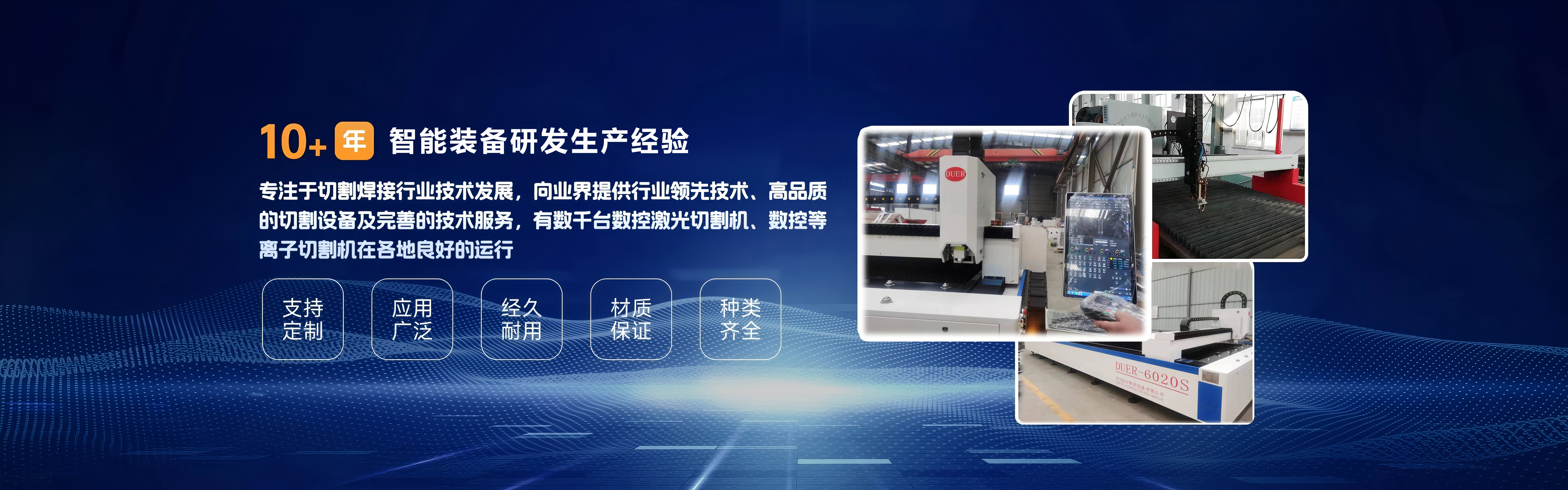 郑州杜尔智能装备有限公司是一家**从事智能激光切割机,数控切割机研发、生产和销售的企业,公司拥有一大批从事机电一体化、自动控制技术、电子信息工程和计算机软件的**中青年科技人才,具有十多年数控系统研发经验。致力打造经济实用数控切割机企业,推广数控自动化切割技术!